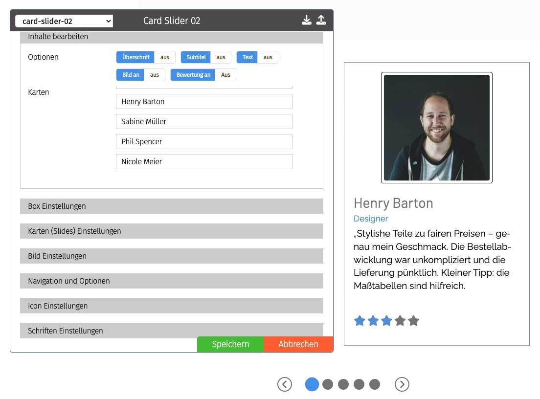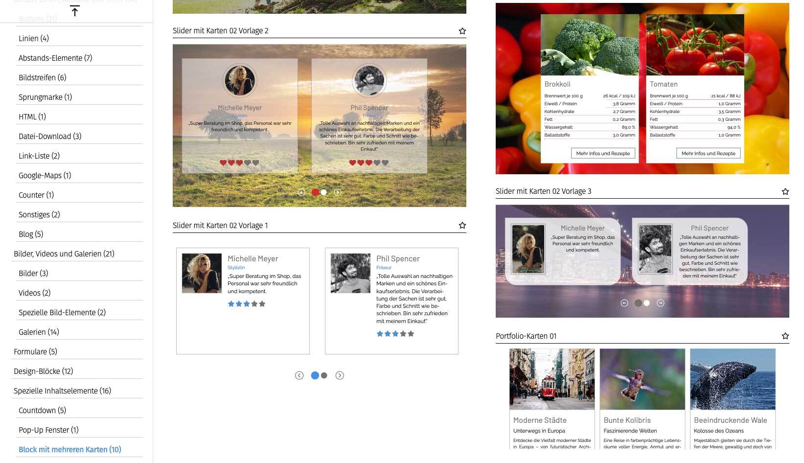 Das Card-Slider Widget zeigt perfekt, warum page4 bei unseren Kunden so beliebt ist: Du bekommst professionelle Funktionen, die früher nur mit aufwendiger Programmierung möglich waren, jetzt per Mausklick.
